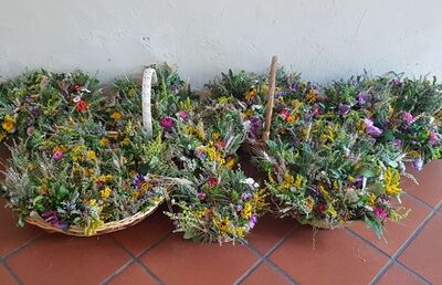 Am Mi. 14. Aug. um 13.30 Uhr im Kloster der Pfarrkirche. Wer Blumen, verschiedene Kräuter, Getreide, Weinlaub, Bindefaden und Gartenschere übrig hat kann dies gerne mitbringen.