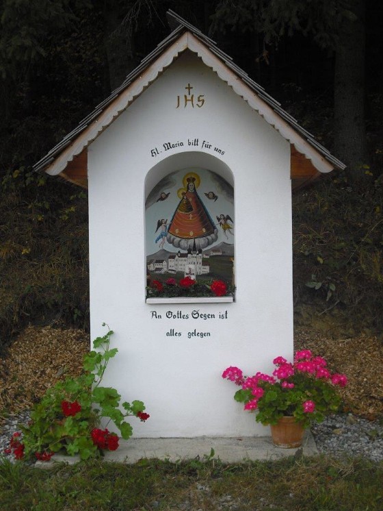 Der äußerst gläubige Besitzer hatte schon lange das Bedürfnis, dem verehrten Wallfahrtsort Mariazell ein Denkmal zu setzen. Zugleich wollte er einen Ort für das Andenken an den im November 2009 im Wald des Anwesens tödlich verunglückten Altbauern Peter Prietl vlg. Wirt schaffen. Der neue Bildstock in der Nähe des Hofes steht idyllisch am Waldrand unter großen Fichten und ist sehr schön mit Pelargonien geschmückt. Unmittelbar daneben laden eine hölzerne Ruhebank und ein kleiner Fischteich zum Verweilen ein. Man hat von diesem Punkt eine herrliche Aussicht über das Murtal und sieht viele Kapellen, Bildstöcke und Kreuze in der näheren Umgebung – von der Badl-Kapelle über den Leonhard-Bildstock am Dirnberg bis zum Gipfelkreuz am Gschwendt.