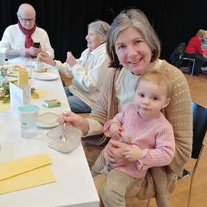 Es wurde auch an­ge­regt geplaudert und gelacht und eine be­son­dere Freude war der Be­such von klein Kamilla mit Oma und klein Aurelia mit Mama. So wurde der Nach­mit­tag zu einem kleinen "Ge­ner­ation­en­tref­fen" mit schönen Be­geg­nun­gen und Ge­sprä­chen.