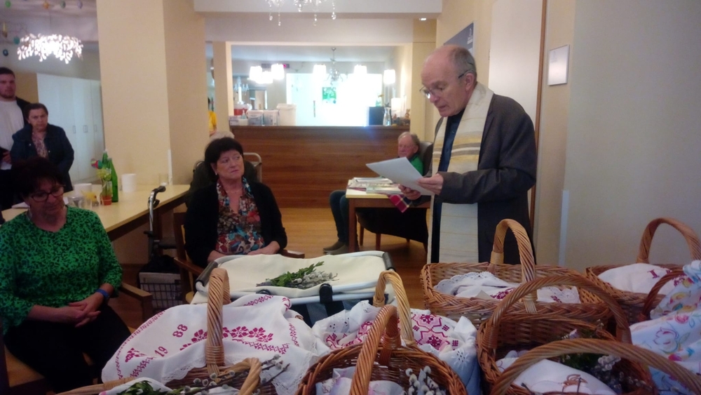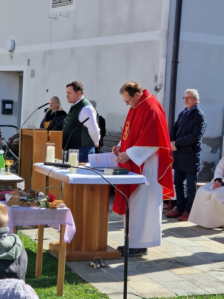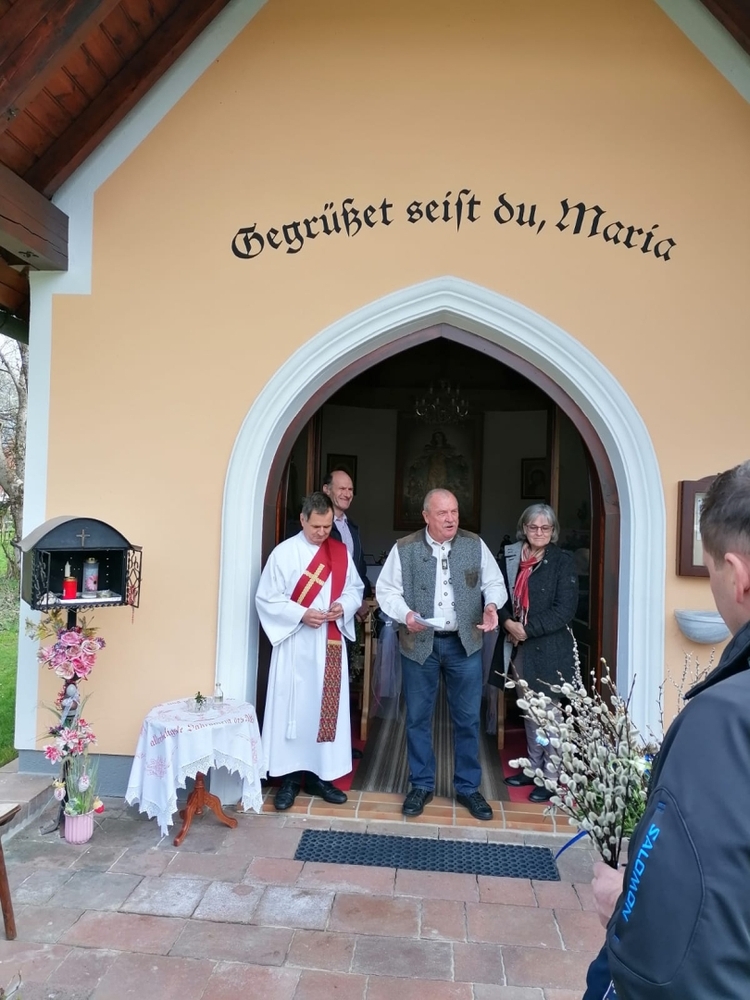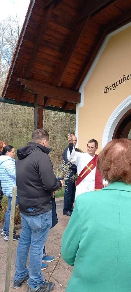 Diakon Franz Habith gestaltete um 11 Uhr in der Kaiserwald-Kapelle die Palmsegnung und Pastoralreferentin Ines Kvar leitete um 14:30 Uhr im Zettling-Park die Feier zur Segnung der Palmzweige.