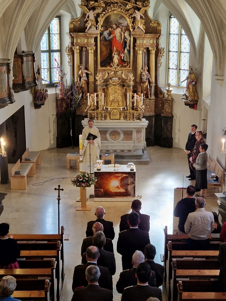 Die Auferstehungsfeier zelebrierten Vikar Gerhard Hatzmann und Diakon Michi Zepf, zusammen mit den Minis, den Lektorinnen und Lektoren, mit Kantor und Kantorin, der Musikgruppe und allen Gläubigen.