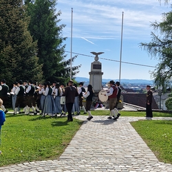 Musikalisch gestaltete – schon traditionell - die Marktmusik Unterpremstätten-Zettling die heilige Messe, den Ein- und Auszug sowie die anschließende Kranzniederlegung beim Kriegerdenkmal.