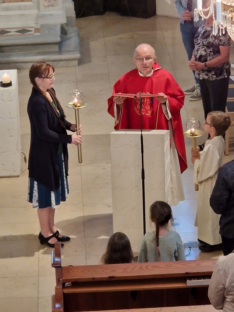 • Vigilfeier mit den Firmlingen am Freitag vor Pfingsten mit Schwester Maria und Vikar Gerhard Hatzmann