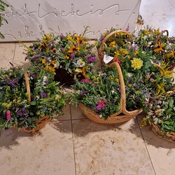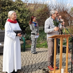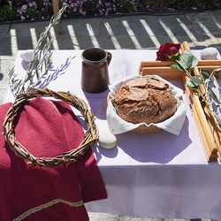 Im Zentrum der schön gestalteten Feier standen ein Taufgedächtnis mit Weihwasserritus, ein Evangelium (Mt, 6, 26-33), Blumentexte (in denen man sich mit der einen oder anderen Blumenbeschreibung ganz gut identifizieren konnte), Dankesworte sowie Fürbitten.