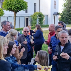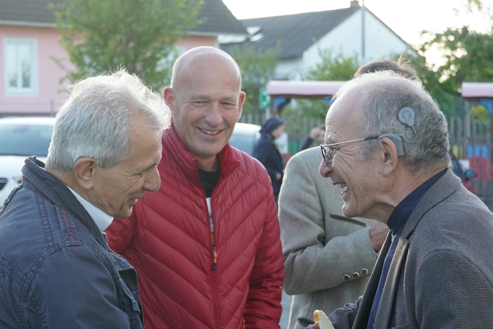 Bei der anschließenden Agape mit Brot und Wein auf dem Kirchplatz gab es dann für alle die Gelegenheit, persönlich mit Vikar Norbert Glaser auf seinen Geburtstag anzustoßen.