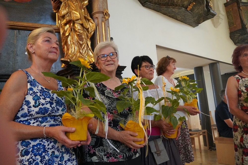 Am Sonntag darauf, dem 18. August, erfüllte feiner Kräuterbüschelduft den Altarraum unserer Kirche. Feierlich segnete Pfarrer Claudiu Budau am Ende der heiligen Messe alle Kräuter- und Blumensträußchen, auch spendete er zusätzlich den Wettersegen.