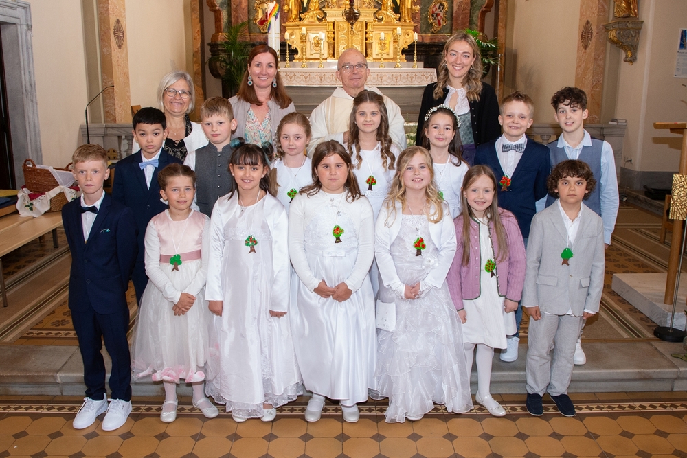 Die Kinder der vier 2. Klassen feierten am Samstag, 4. Mai ihre heilige Erstkommunion aufgrund der schlechten Wetterprognosen in der Pfarrkirche Wundschuh. Erstmals konnten wir mit 52 Kindern und ihren Familien nicht auf unserem Kirchplatz in Premstätten feiern. Bei 13 Grad Celsius zogen die Kinder in die Kirche ein. Doch uns wurde bald wärmer! Nicht nur durch das schöne miteinander Feiern, sondern auch weil so viele Gäste die Kirche bis auf den letzten Platz füllten.