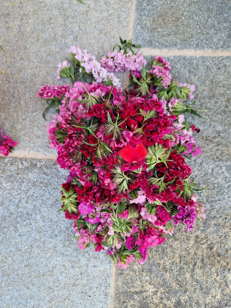 So entstand ein wunderschöner Blumenteppich für den Altar auf dem Kirchplatz.